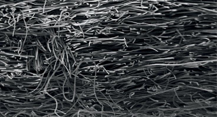 solidne włókna zwiększają wagę | płaska, warstwowa struktura 2D ogranicza przedostawanie się powietrza | utrata właściwości izolacyjnych przy ściskaniu | włókna łączą się ze sobą ograniczając elastyczność